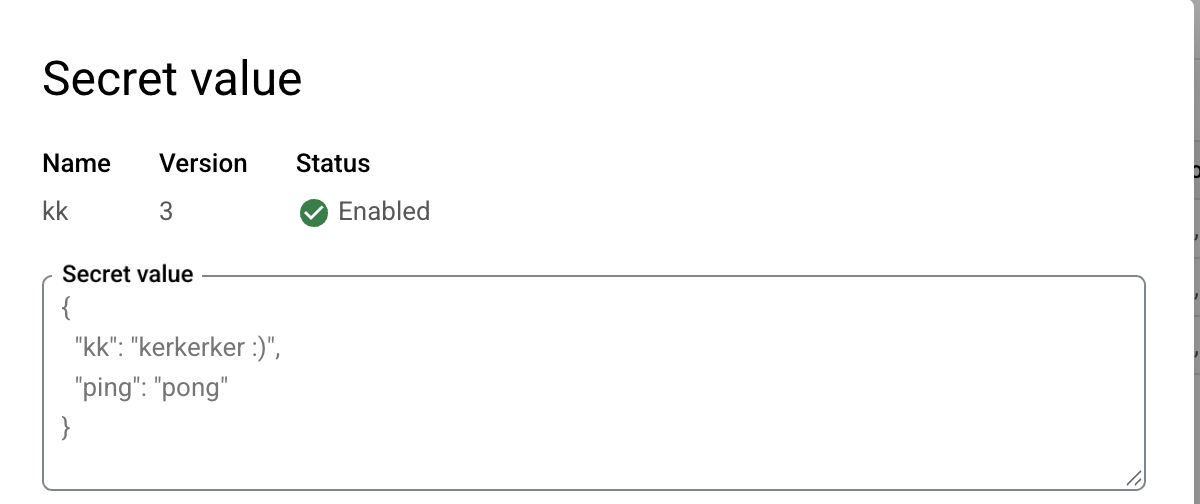 在 Secret value 的部分,是以 json 的格式存放 key-value