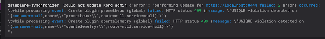 與該 RD 確認後確認 最開始這些 plugin 還沒有版控方式,所以是手動在 Kong UI 上建立 故可能為後續透過版控建立時,因為 Plugin 資源的唯一性導致衝突而造成 Create Failed 後續把當時手動建立的 Plugin 移除後,相關 error log 就消除了