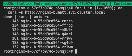 回頭查看 endpointslice 的分配,換成會對負責 7 個 zone-b 的 nginx-b 做 round-robin 的輪詢
